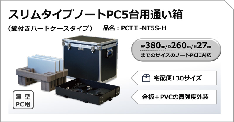 PCTⅡ-NT5W-Hのスリムタイプです。緩衝材部分をスリム化し、宅配サイズを130サイズに収めています。